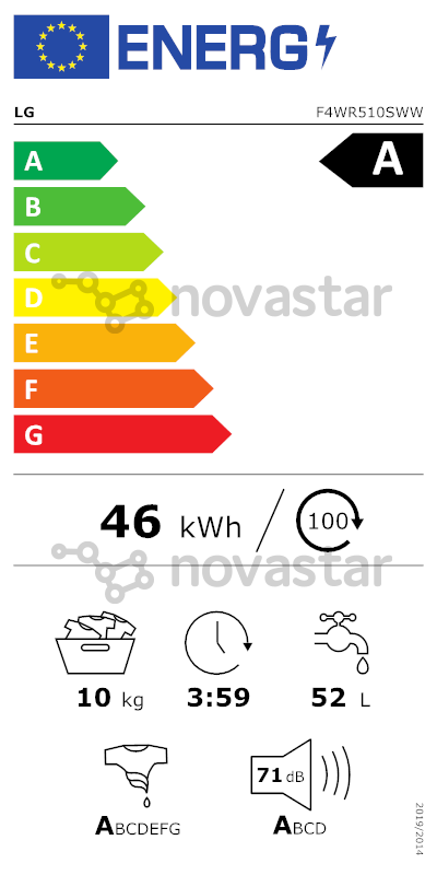ASpin Performance Efficiency Class. Performance class of a drum-equipped dryer is displayed on the scale from A (the most effective) to G (the most inefficient).