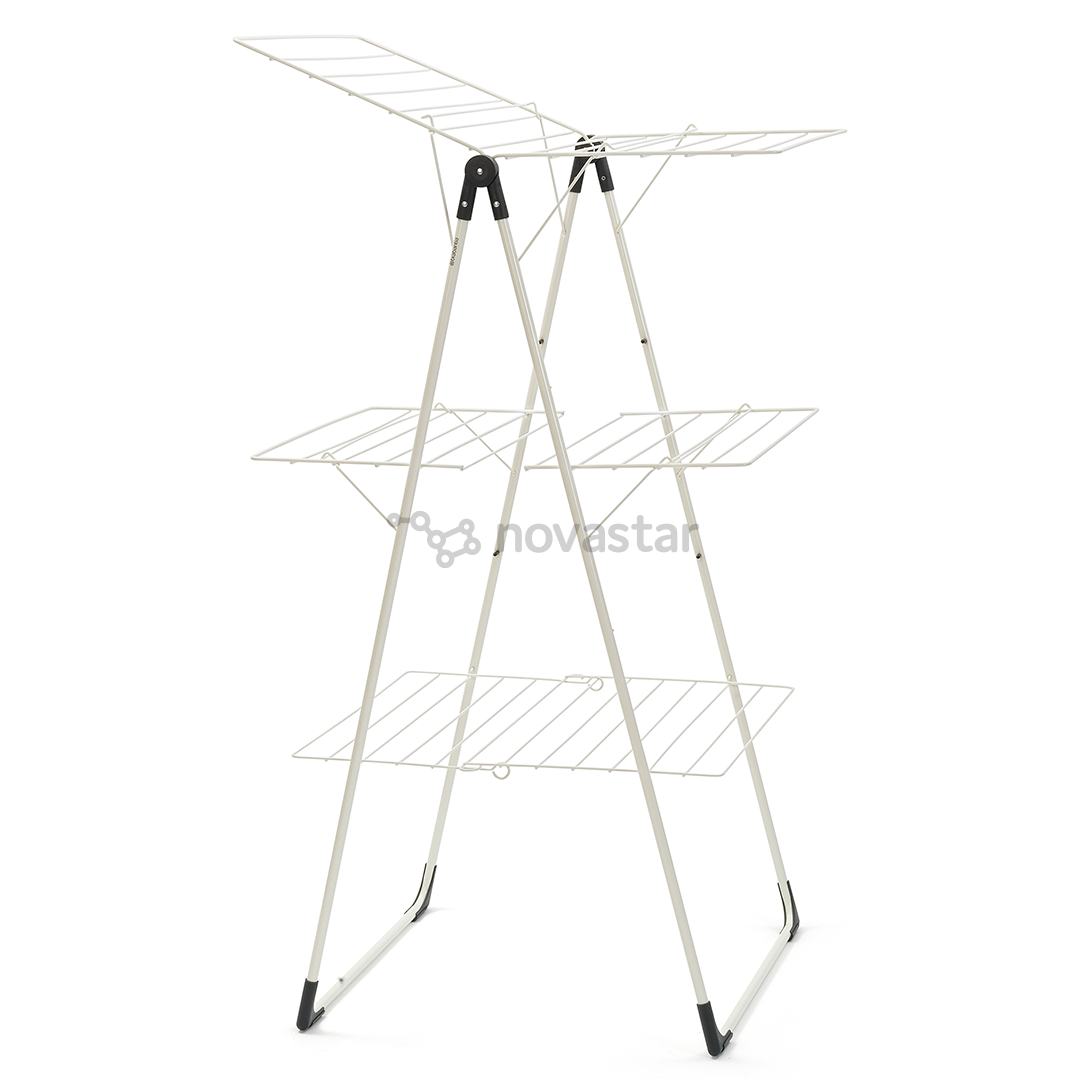 • Spacious - can take up to two machine loads of laundry • For laundry items big and small - adjustable wing height • Space saving - compact size when folded and easy to put up • Easy to move, even when loaded with laundry - with transport lock • No surprises - child lock prevents accidental folding • Suitable for (flat) drying of delicate laundry - with drying platform • Less chance of damage to the floor - robust protective caps • Planet friendly - Cradle-to-Cradle® Certified, Bronze level • Good for the planet too - energy saving and supporting WeForest with planting more trees • The maximum load of the Drying Rack is 20 kg when load evenly distributed over the rack