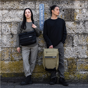 The backpack is constructed from durable 420D nylon fabric, premium YKK zippers, and a PFC-free water-resistant coating. It holds the bluesign® certification, ensuring environmental friendliness. A loop for attaching a bicycle light and reflective details enhance visibility at night. The bag can be securely attached to rolling luggage, while the padded mesh back panel and chest strap ensure comfort and airflow while carrying.
