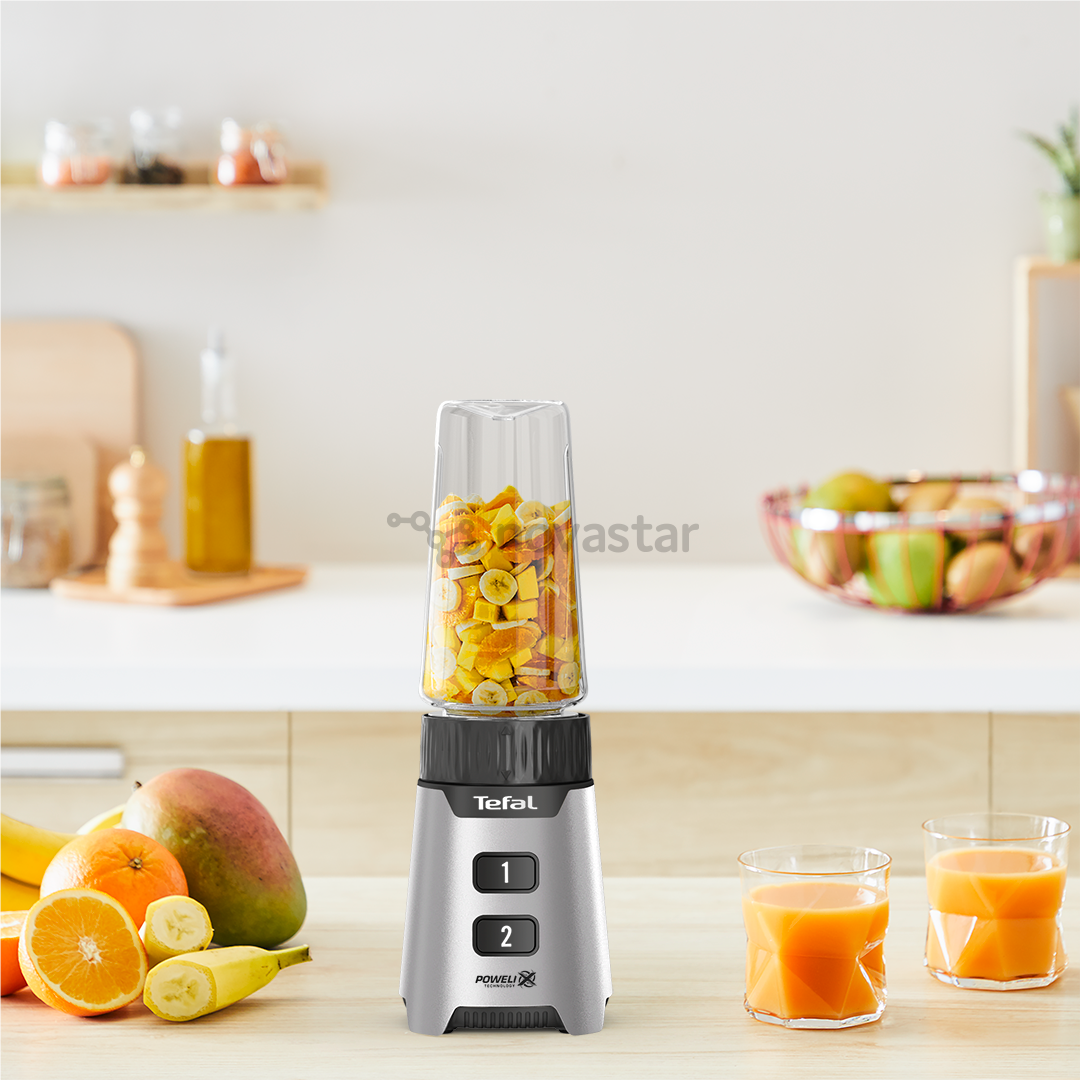With the Tefal Minimix Blender, enjoy big blending in a mini machine. Its powerful motor and Powelix Blades Technology promise high-performance results up to 30% faster* on everything from delicious smoothies to fresh vegetable soups. Easy to store, easy to clean and easy to operate, it even comes with an on-the-go bottle for blending and transport all in the same container—the perfect start to healthy living!
