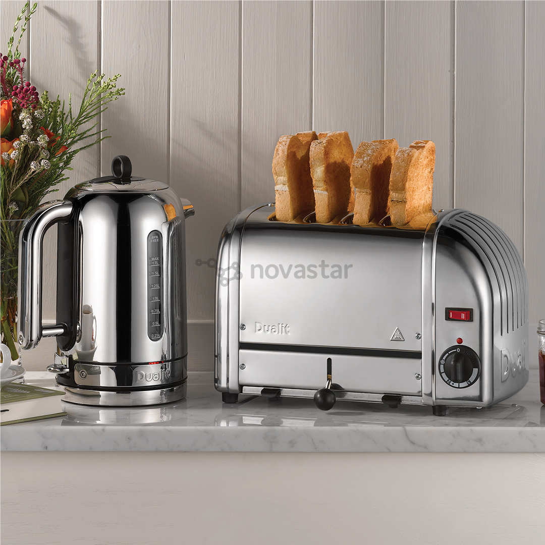 Every Classic Toaster is equipped with ProHeat® elements, a key feature that ensures superior toasting performance and durability. These patented elements are designed with a unique protective film that keeps the filaments clean and makes them virtually unbreakable. The ProHeat® elements deliver fast, even toasting by maintaining consistent heat distribution across the bread to ensure that every slice is perfectly toasted. This advanced technology enhances efficiency and prolongs the life of the toaster, reinforcing Dualit’s reputation for quality.
