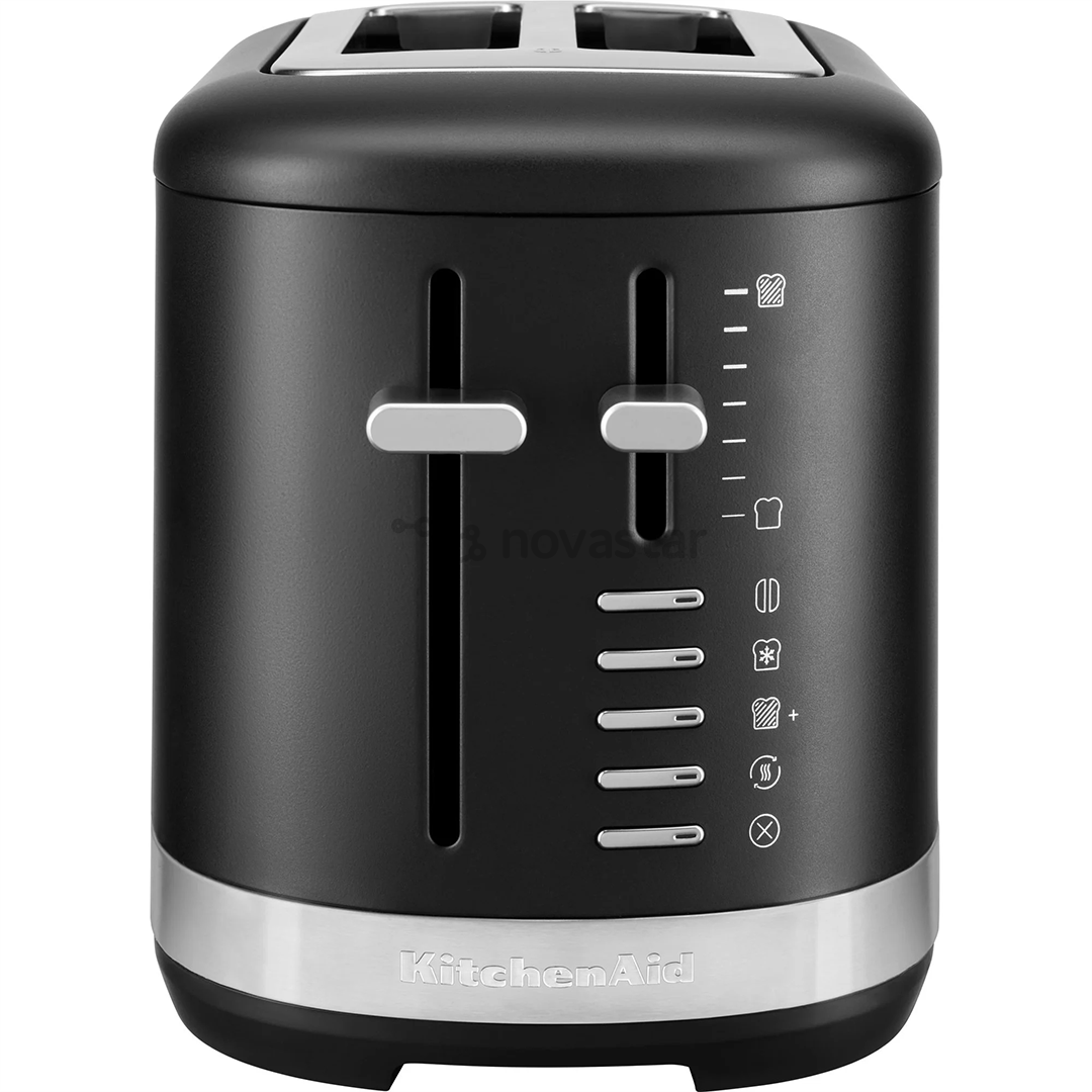 KitchenAid's two-slot toaster is perfect for toasting various types of bread, thanks to its extra-wide slots. The seven-shade control lever allows for precise selection of desired browning, while the manual high-lift lever makes removing toast or bread easy. With four special functions – a little longer, reheat, defrost, and bagel toasting – this toaster is highly versatile for everyday use.