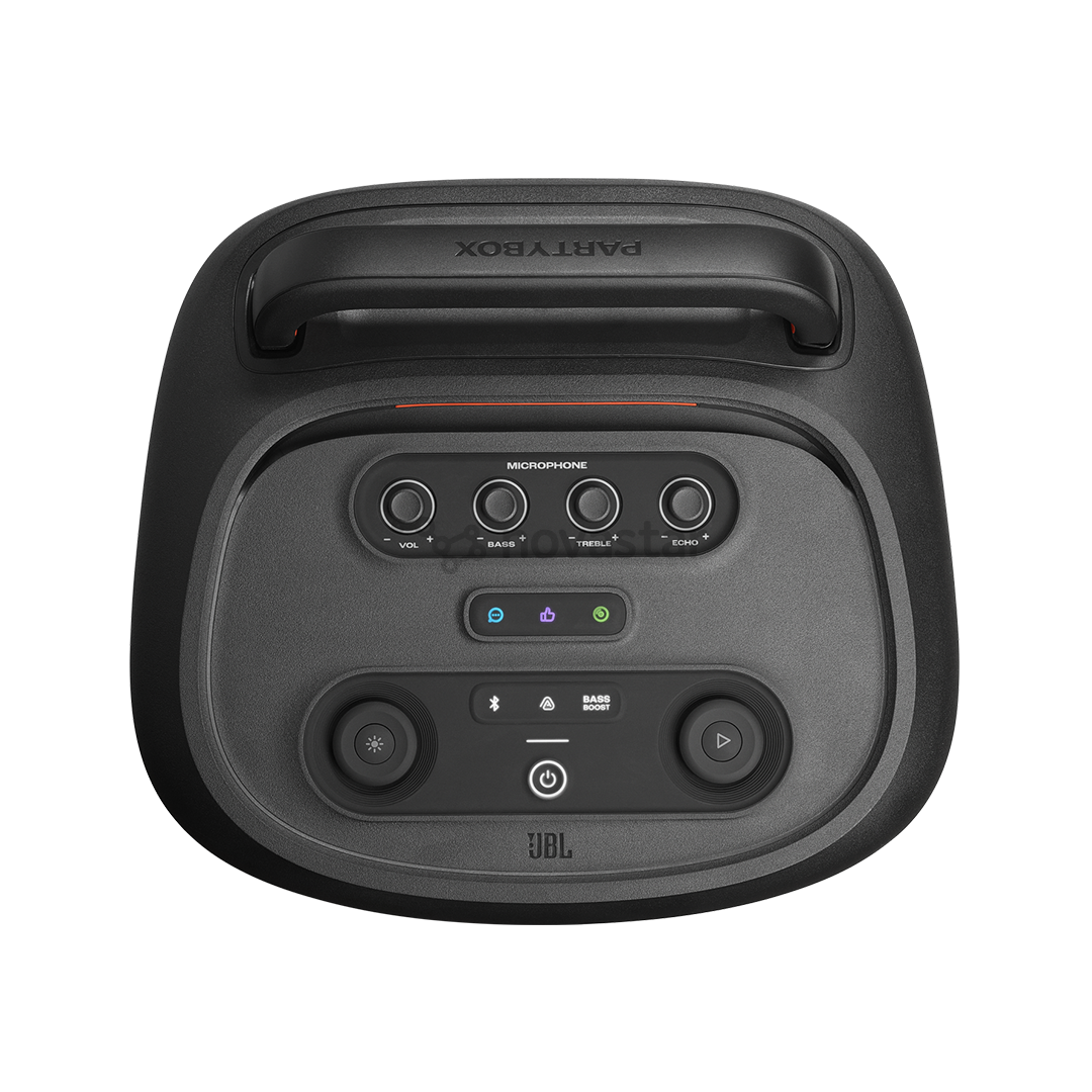 JBL PartyBox 520 suteikia įspūdingą garsą, dinamišką apšvietimą ir iki 15 valandų grojimo laiką – puikus pasirinkimas bet kokiai vakarėlio atmosferai. Dėl AI Sound Boost funkcijos muzika išlieka aiški net ir maksimaliu garsumu.
