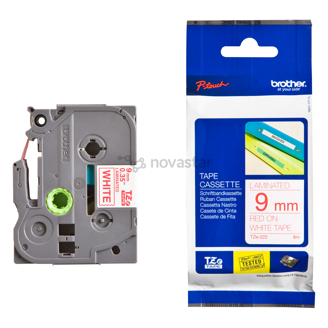 Brother TZe-222 Red on White Labelling Tape – 9 mm wide wide, 8 m long.