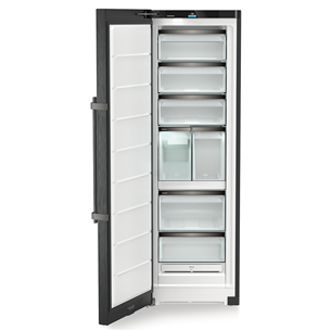 Dėl NoFrost technologijos galite pamiršti rankinį atitirpinimą – ledas šaldiklyje nebesikaups. Su IceTower funkcija visada turėsite pakankamai ledo kubelių, o integruotas SmartDeviceBox leidžia šaldiklį patogiai valdyti išmaniuoju telefonu. Papildomos funkcijos, tokios kaip NightMode, Bottle Timer ir modernus Touch & Swipe valdymo ekranas, užtikrina lengvą ir malonų naudojimą kiekvieną dieną.