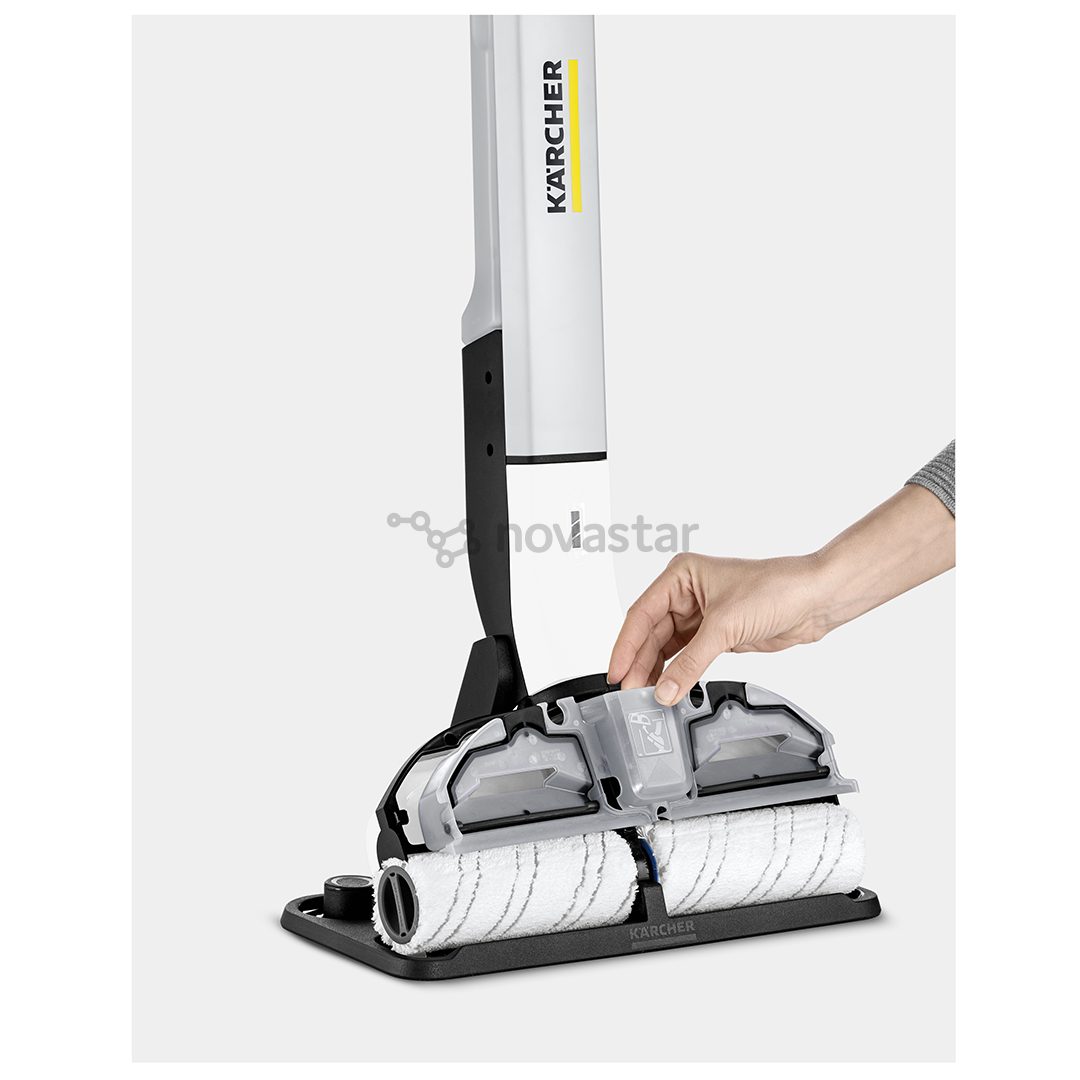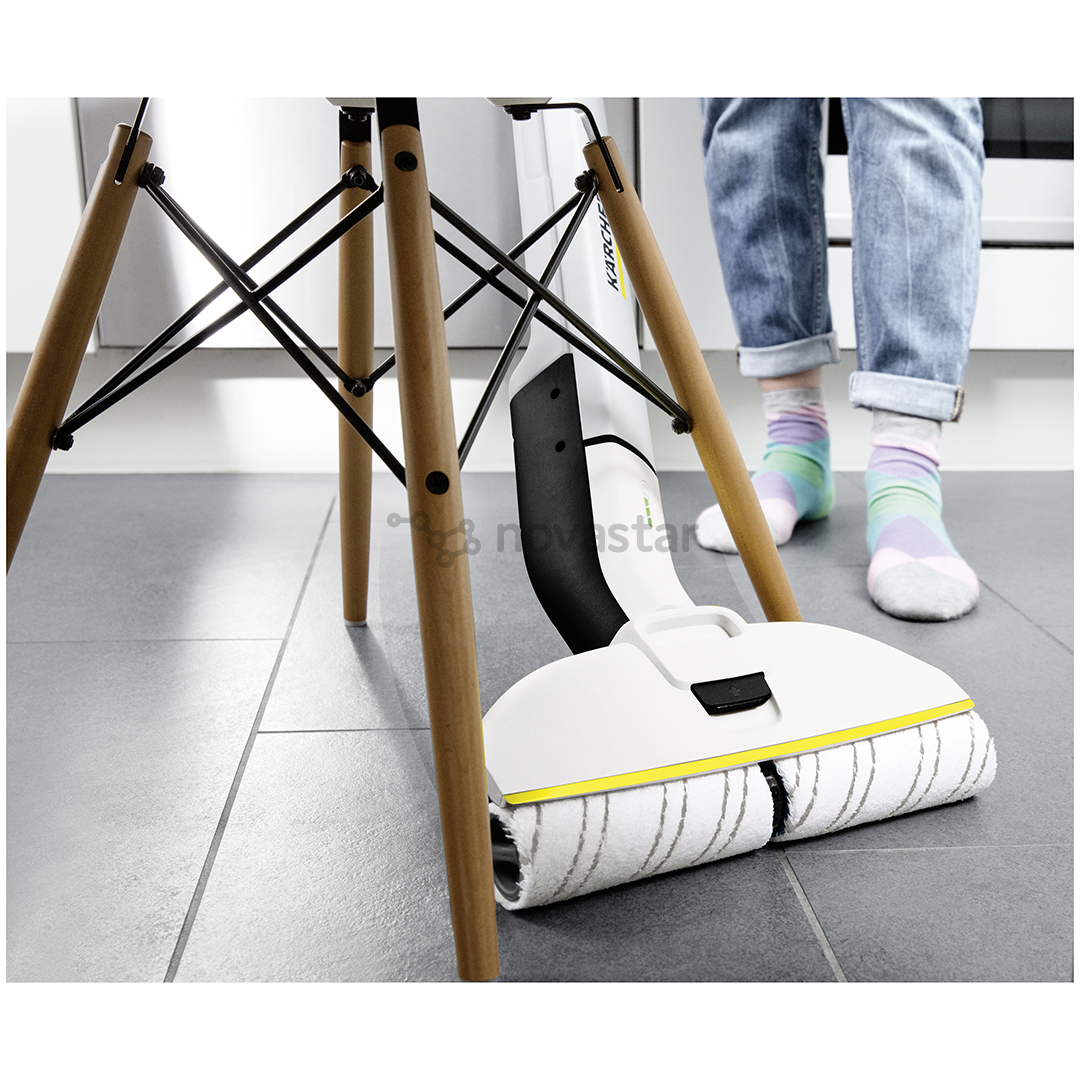 The electrically driven microfibre rollers rotate at 500 revolutions per minute so the EWM2 Cordless almost appears to move itself across your floor. Forget laborious scrubbing and dragging a water bucket around as well as the effort of shifting furniture, because a hinge makes the EWM2 Cordless exceptionally manoeuvrable so it can move beneath furniture such as sofas, cupboards and beds with ease. With an emphasis on slim product design, and a practical storage station for the rollers, the EWM2 Cordless can be stored in small homes, cupboards, pantries or utility rooms.