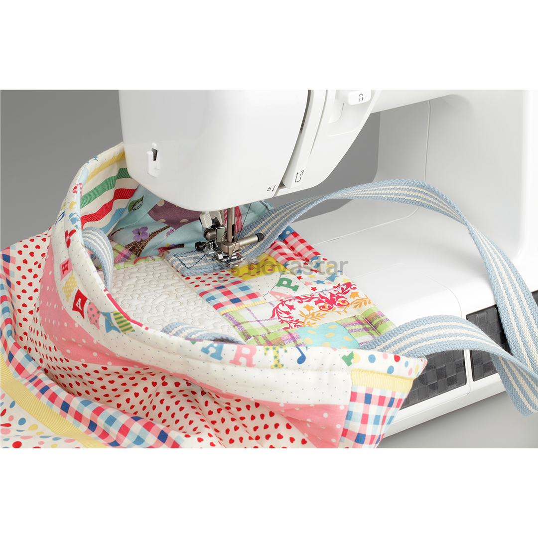 The Brother HF27 STRONG & TOUGH is a versatile, durable, and reliable sewing machine, especially suitable for sewing thick and sturdy fabrics. The machine features a metal needle plate and a presser foot with a fixator, allowing for easy stitching transitions from thinner to thicker areas. Additionally, the included Teflon foot is helpful for sewing materials like leather, plastic, vinyl, etc.