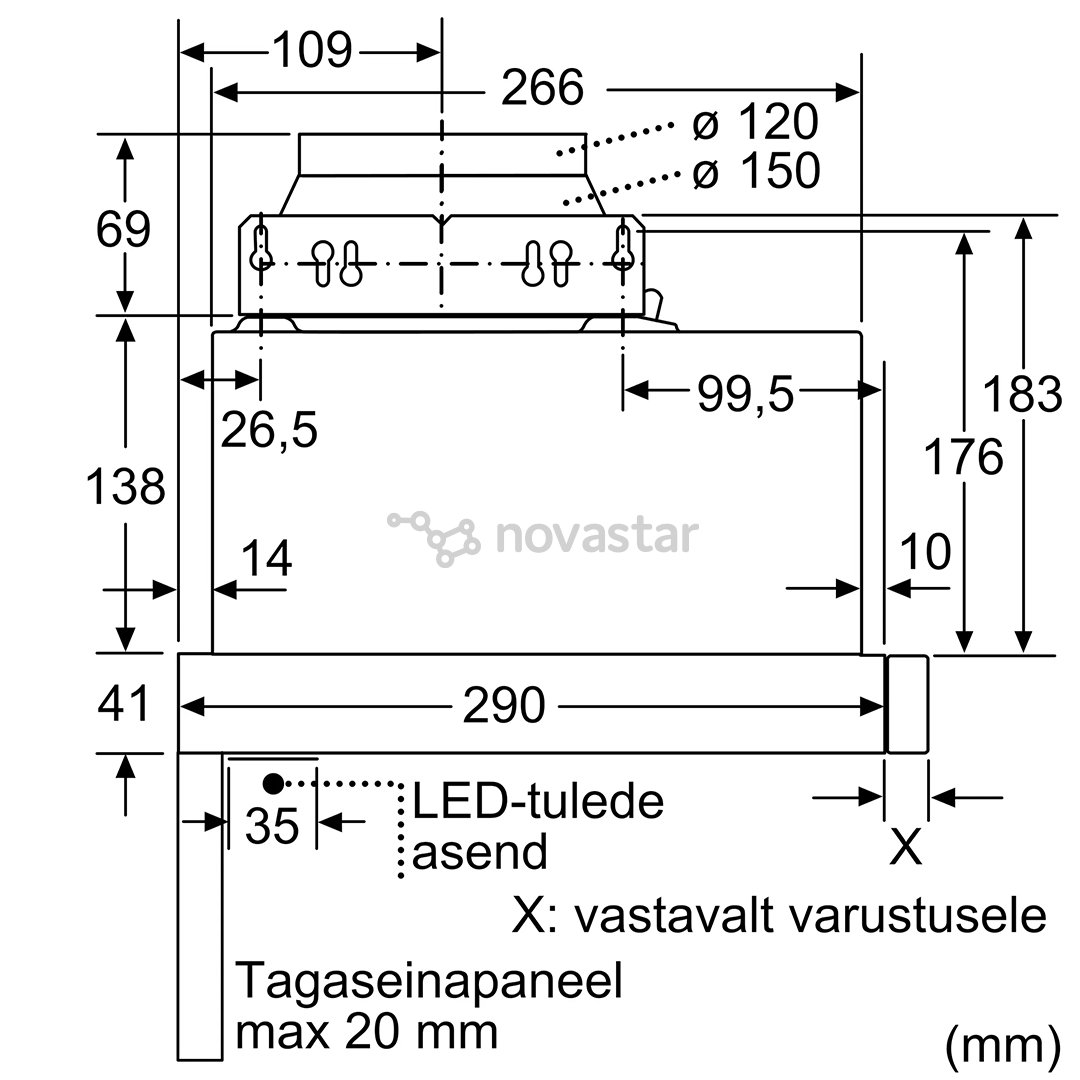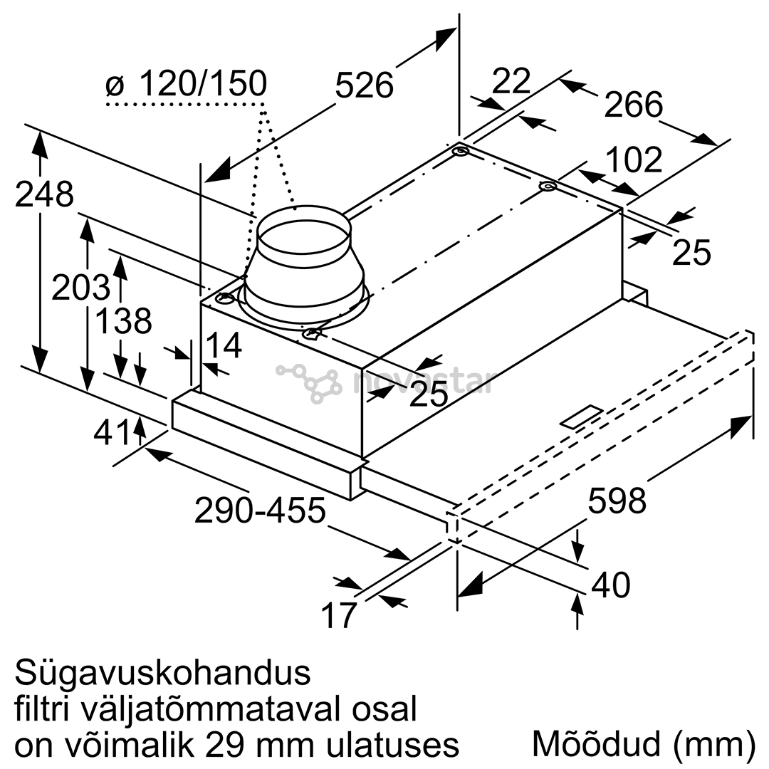 Bosch, 728 м³/ч, ширина 59,8 см, серебристый - Интегрируемая вытяжка