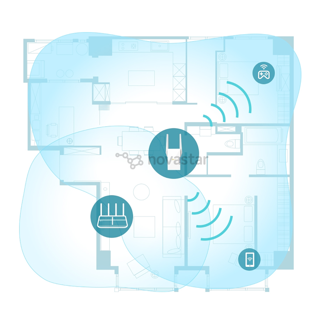 WiFi-покрытия одного роутера недостаточно, чтобы устранить все зоны со слабым сигналом. Подключение RE605X к текущему роутеру обеспечит улучшенный WiFi-сигнал во всем доме и позволит наслаждаться плавным WiFi 6 на высокой скорости в любой комнате.