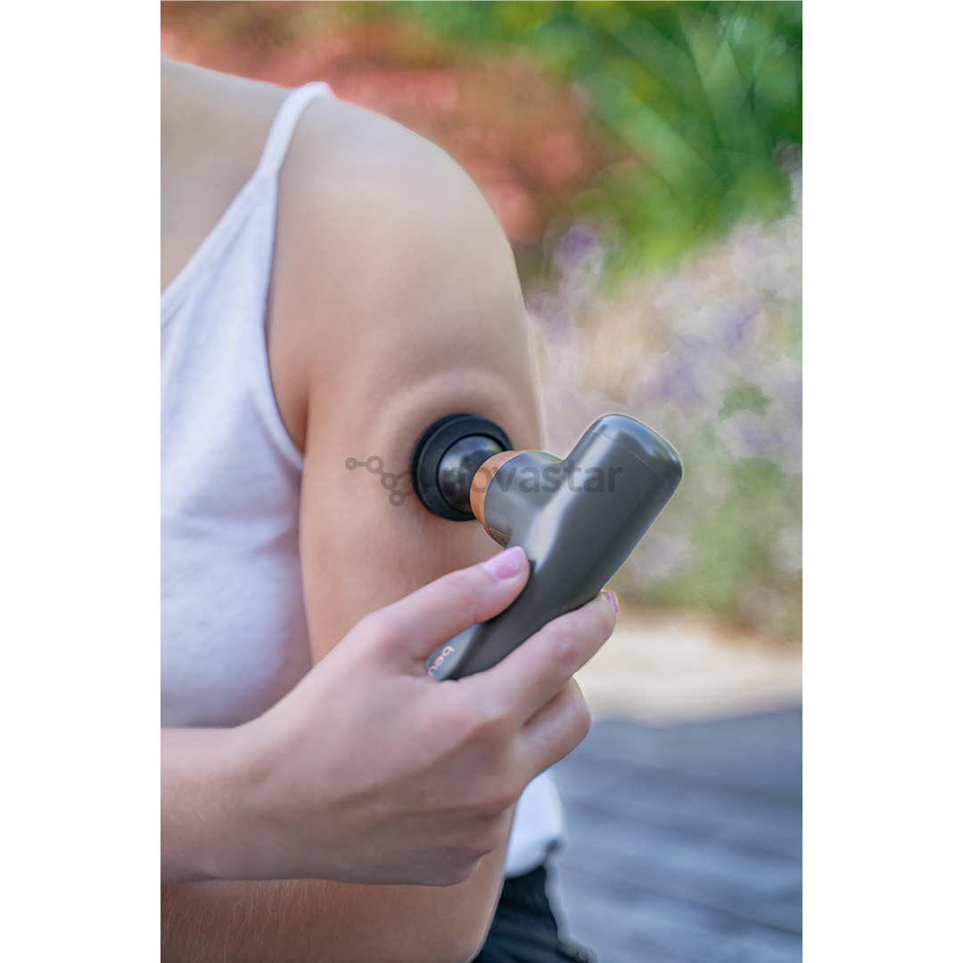 Массажный пистолет MG 79 очень маленький (всего 14,7 см), но при этом очень мощный. Благодаря трем уровням интенсивности, трем массажным насадкам и времени работы от аккумулятора до 3 часов он идеально подходит для чувствительных участков тела, таких как мышцы шеи, стоп и челюсти.