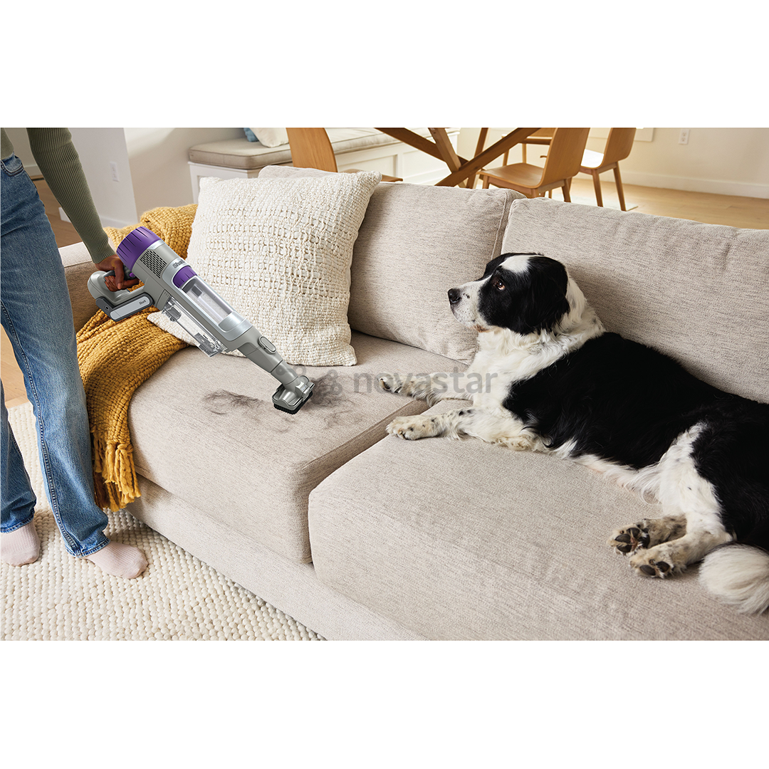 Shark PowerDetect легко превращается в мощный ручной пылесос и включает щелевую насадку для труднодоступных мест, моторизированную насадку для удаления шерсти и мусора с мебели, а также насадку для очистки разных поверхностей.