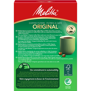 Melitta vertina ne tik kavos malonumą, bet ir atsakingą požiūrį į aplinką. Filtrų gamybai naudojamas popierius gaunamas tik iš tvarios miškininkystės Europoje.